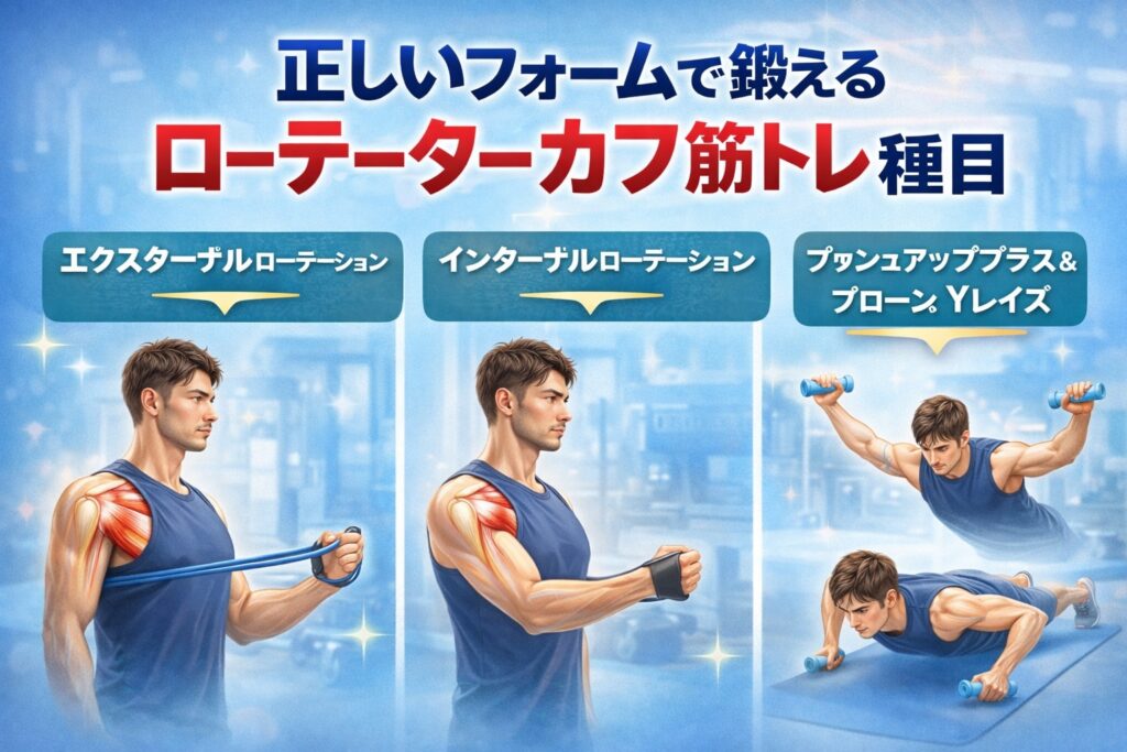 ローテーターカフ 筋トレ は、肩のインナーマッスル(回旋筋腱板)を安全かつ効果的に鍛えるためのトレーニング方法です。肩関節の安定性向上、ケガ予防、スポーツパフォーマンスアップまで、初心者にも分かりやすく解説します。