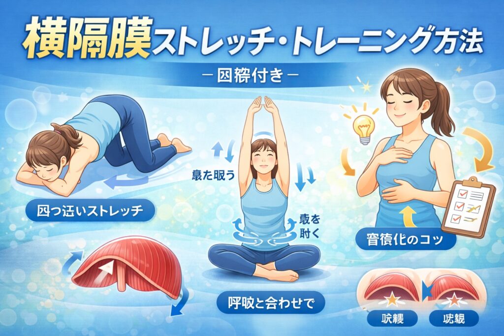 4.横隔膜ストレッチ・トレーニング方法(図解付き)