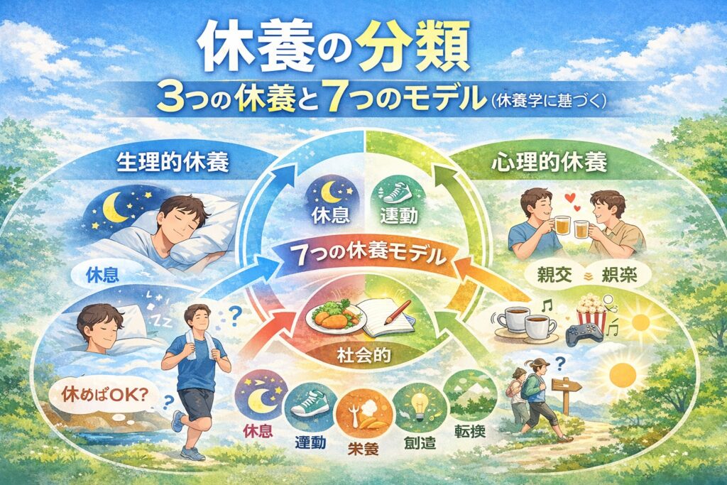 そんな疑問を感じたときに知っておきたいのが、休養には種類があるという考え方です。