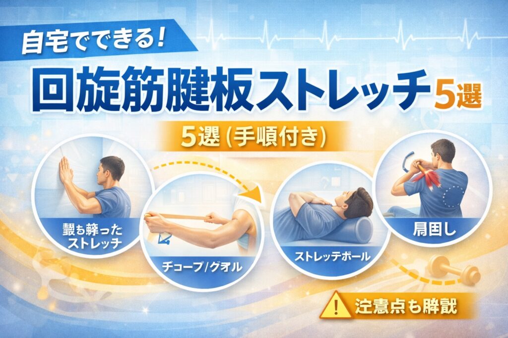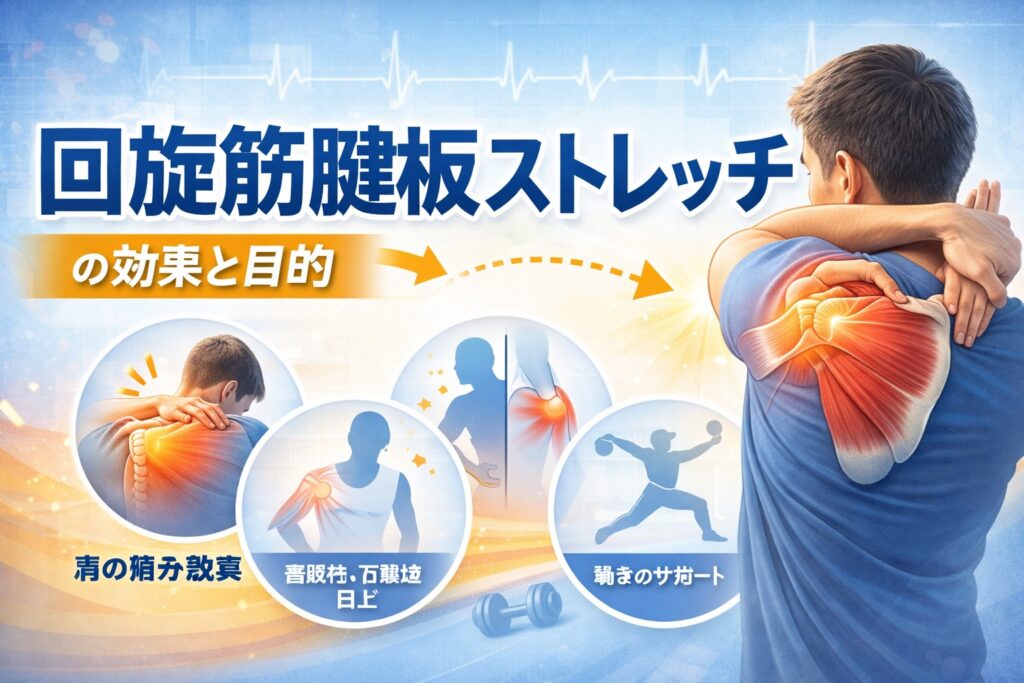 回旋筋腱板 ストレッチ|肩のインナーマッスル構造・役割を解説し、痛み改善・柔軟性アップにつながるセルフストレッチ手順を図解付きで紹介します。運動前後の使い分けや注意点も解説。