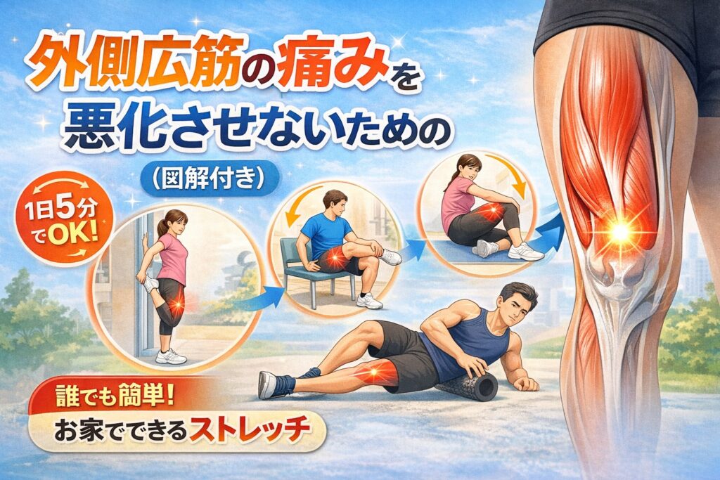 外側広筋 痛み ストレッチ|外側広筋の痛みの原因と、専門家も推奨する効果的なストレッチ方法を分かりやすく解説。痛みが出る動作・注意点・セルフチェック方法まで紹介。