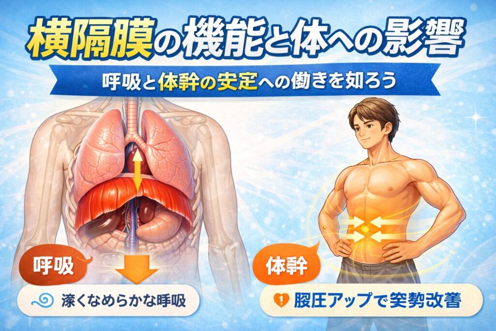 横隔膜は呼吸だけでなく、体幹の安定や腹圧の調整にも関係していると言われています。