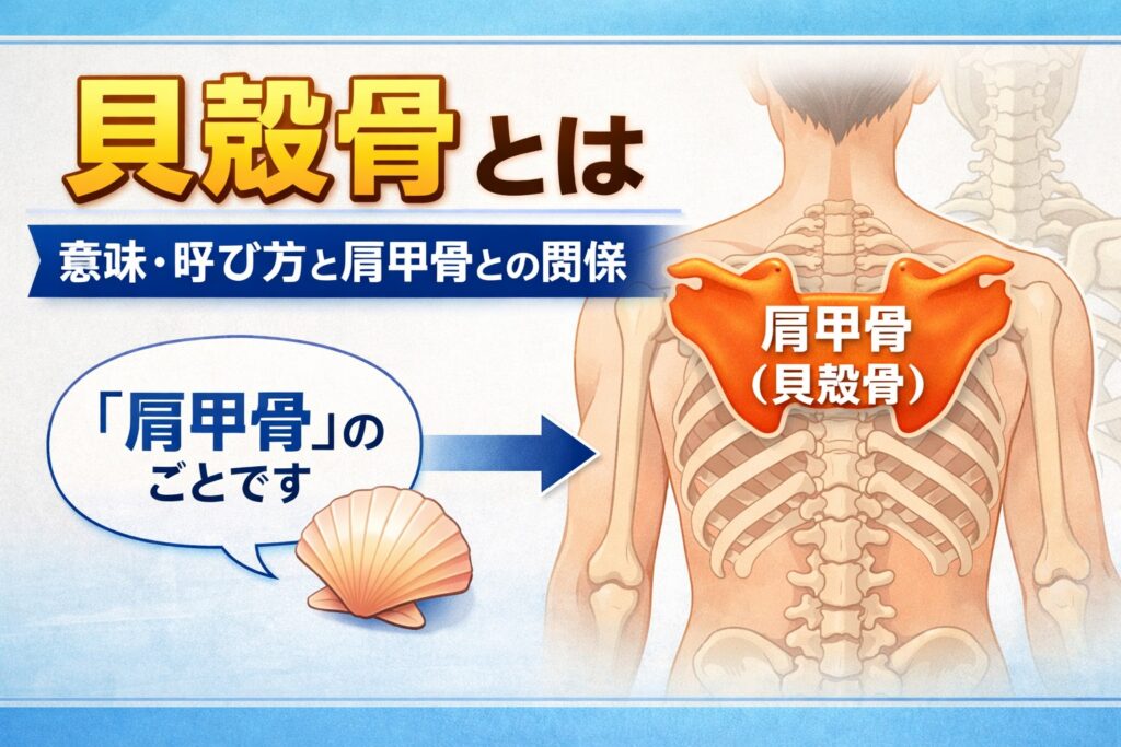 貝殻骨は、肩甲骨(かたかごつ)を指す俗称として使われている言葉です。辞書的にも、貝殻骨=肩甲骨という扱いがされており、正式な解剖学用語ではないものの、意味としては肩甲骨そのものを表しています。