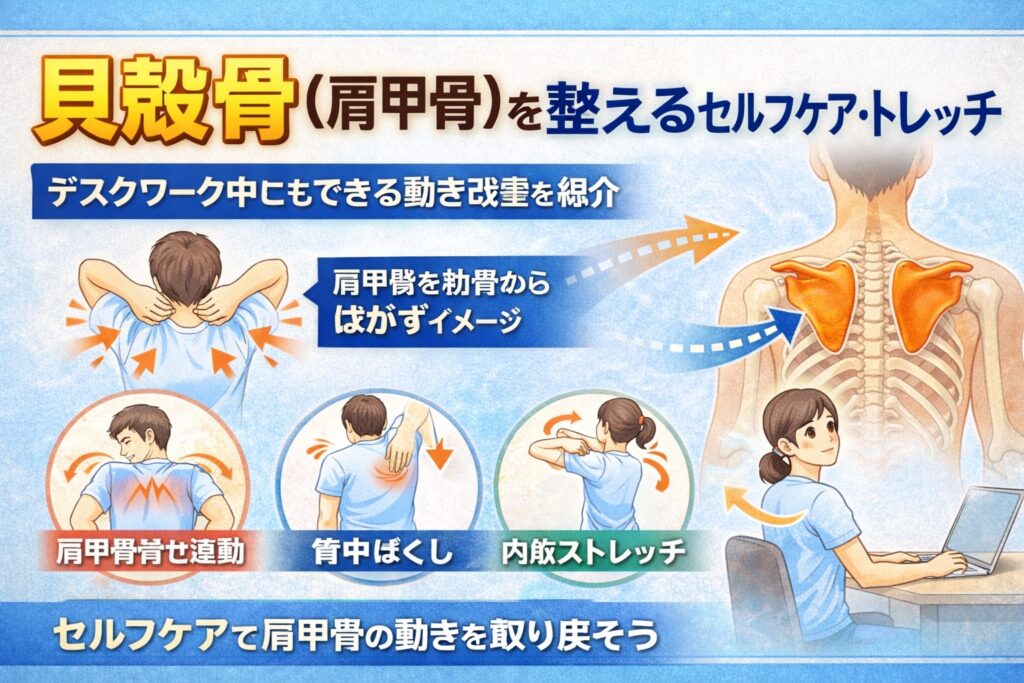 「肩こりが気になるし、貝殻骨を動かしたほうがいいのはわかるけど、何からやればいい?」