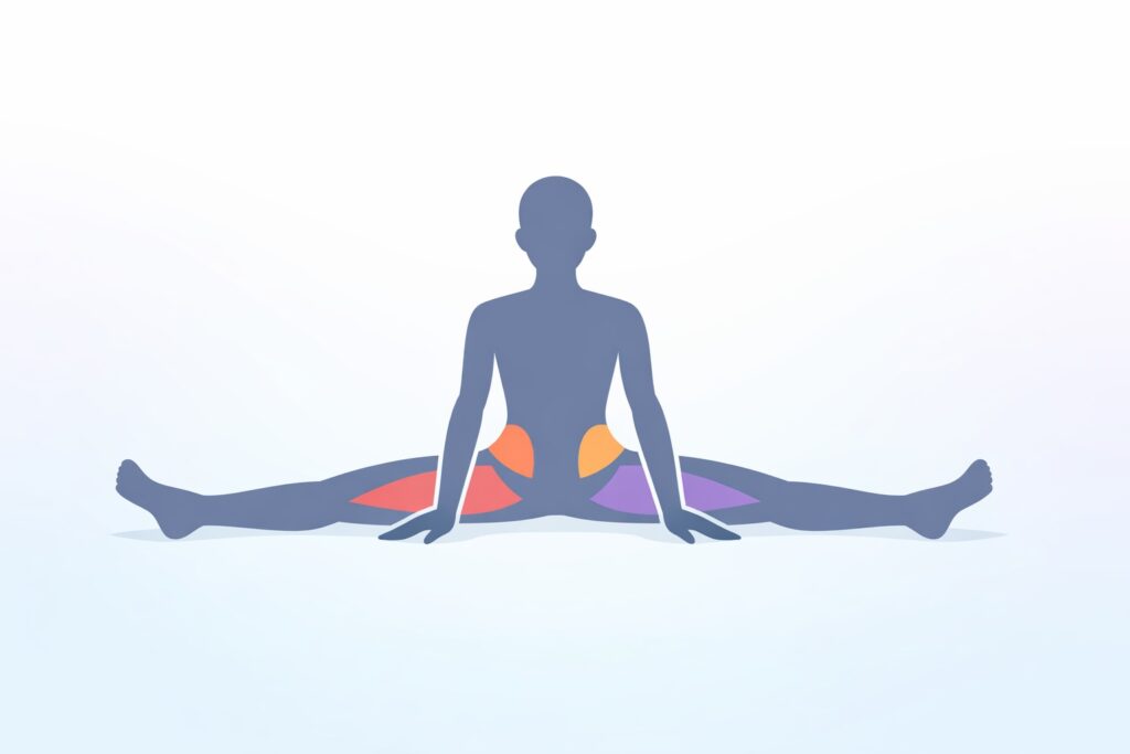 開脚 筋肉|開脚が苦手な人向けに、180度まで開くために重要な筋肉(内転筋・中殿筋・大殿筋・ハムストリングスなど)を解説し、効果的なストレッチと練習法をわかりやすく紹介します。安全に柔軟性を高めたい方へ。