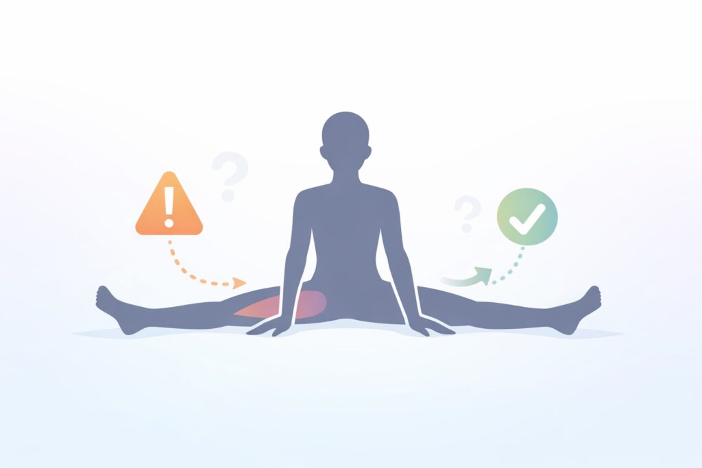 開脚練習では、やり方次第で遠回りになることもあると言われています。ここでは、安全に続けるための注意点と、よくある疑問を整理します。