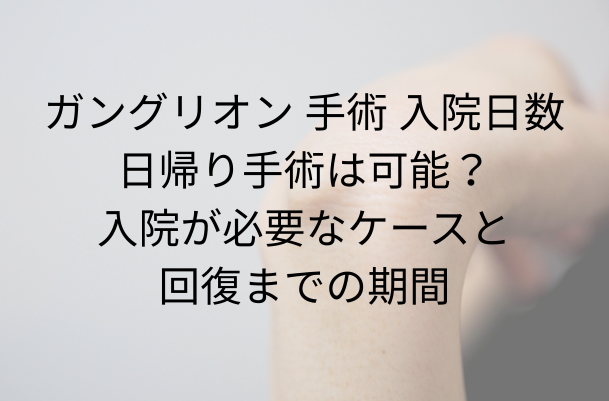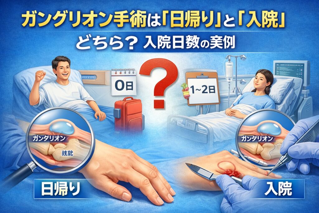 ガングリオン 手術 入院日数について解説します。ガングリオン手術は多くが日帰りで可能ですが、部位や状態によっては入院が必要なケースもあります。入院日数の目安や回復期間、術後のケアまでわかりやすく説明します。