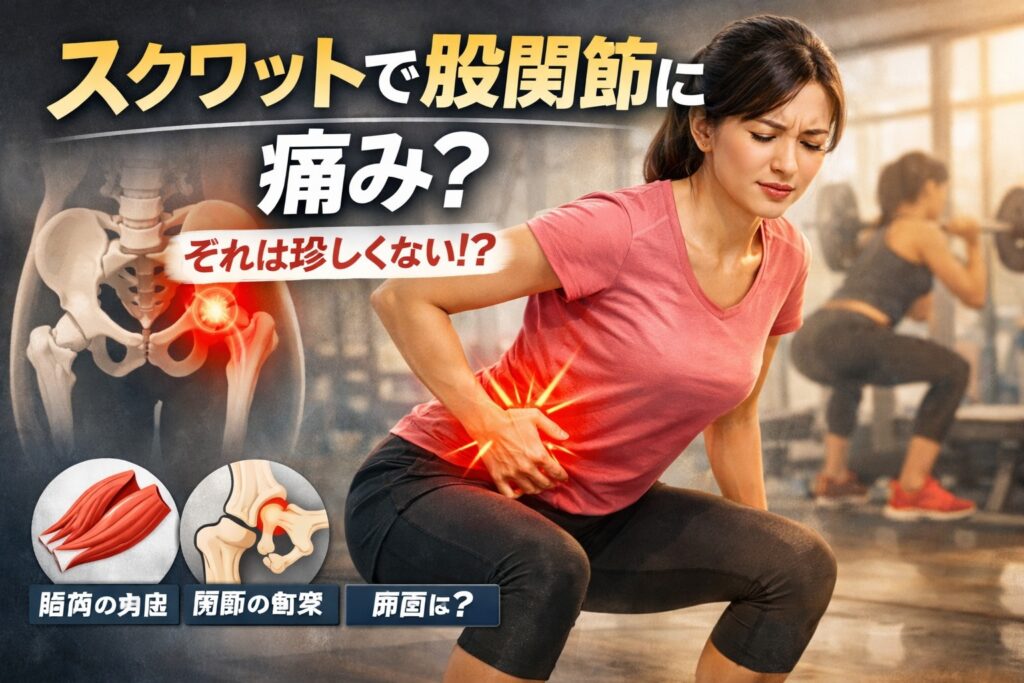 なお、スクワット時の股関節負担や痛みについては、専門サイトでも「動作特性上、違和感が出るケースは一定数ある」と解説されています。
