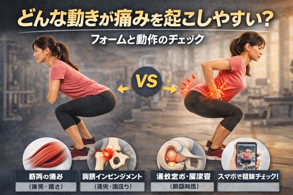 「同じスクワットをしているのに、なぜか股関節が痛い…」