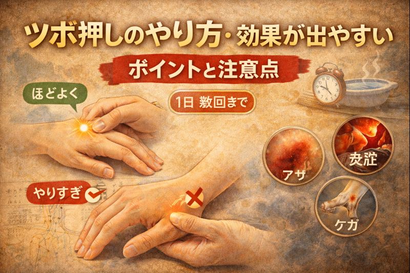 実践するうえで大切なのが、安全面への配慮です。ツボ押しはセルフケアとして取り入れやすい一方、やりすぎると逆効果になる可能性があると言われています。