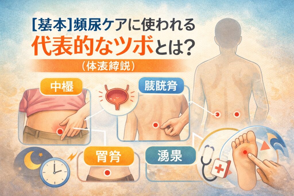 ツボ 頻尿|頻尿・夜間頻尿の症状に悩む方へ。東洋医学でよく使われるツボの位置や押し方を解説し、自宅で簡単にできるセルフケア方法を図解付きで紹介します。