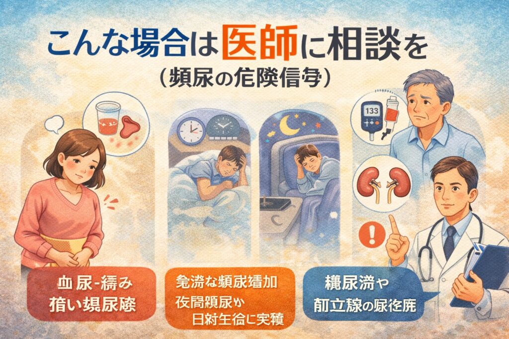 「頻尿だけだから大丈夫」と思っていても、別のサインが隠れている場合もあるとされています。