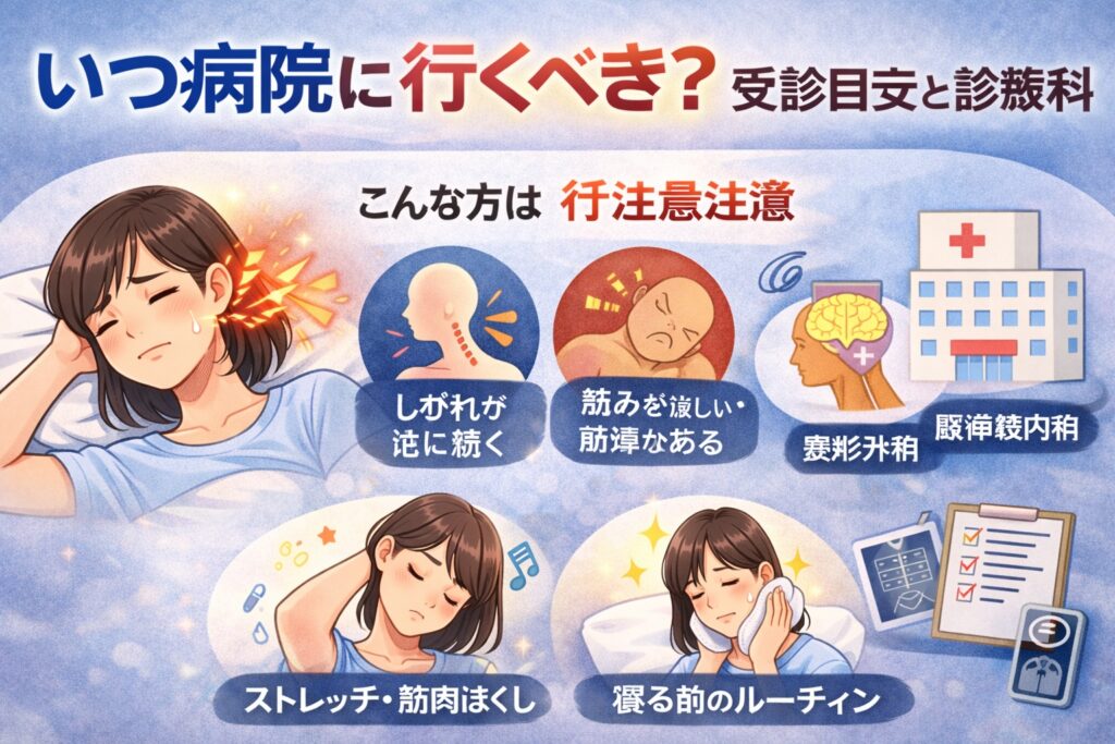 こう迷う人は多いと思います。多くは生活習慣や姿勢が関係すると言われていますが、中には医療機関での確認がすすめられるケースもあるため、目安を知っておくことが大切です。