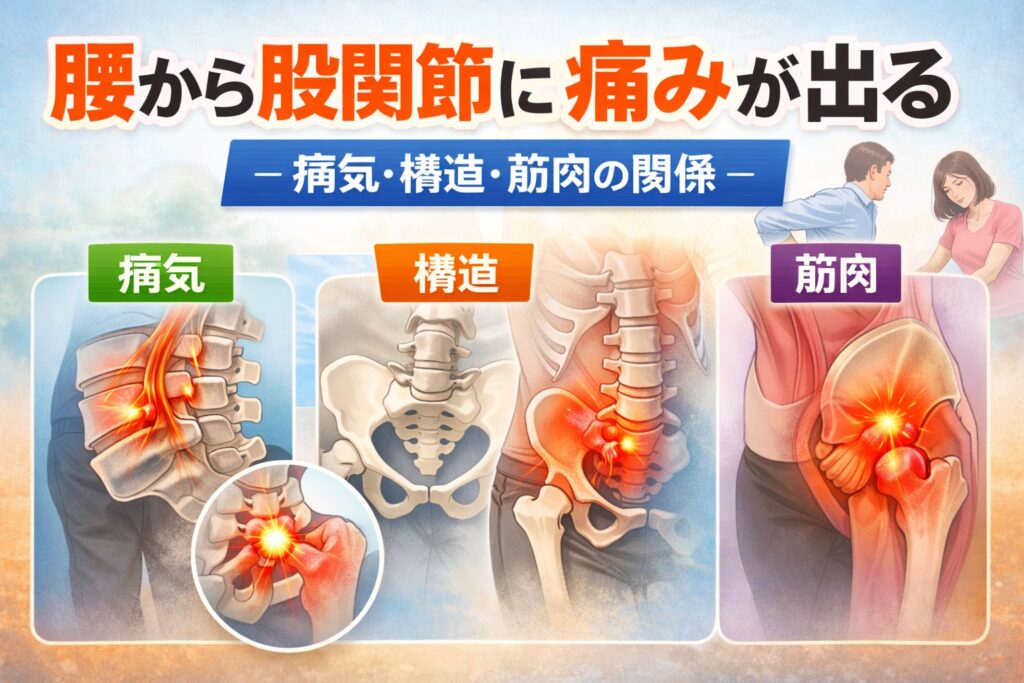 「腰が痛いと思っていたら、なんだか股関節まで違和感がある…」