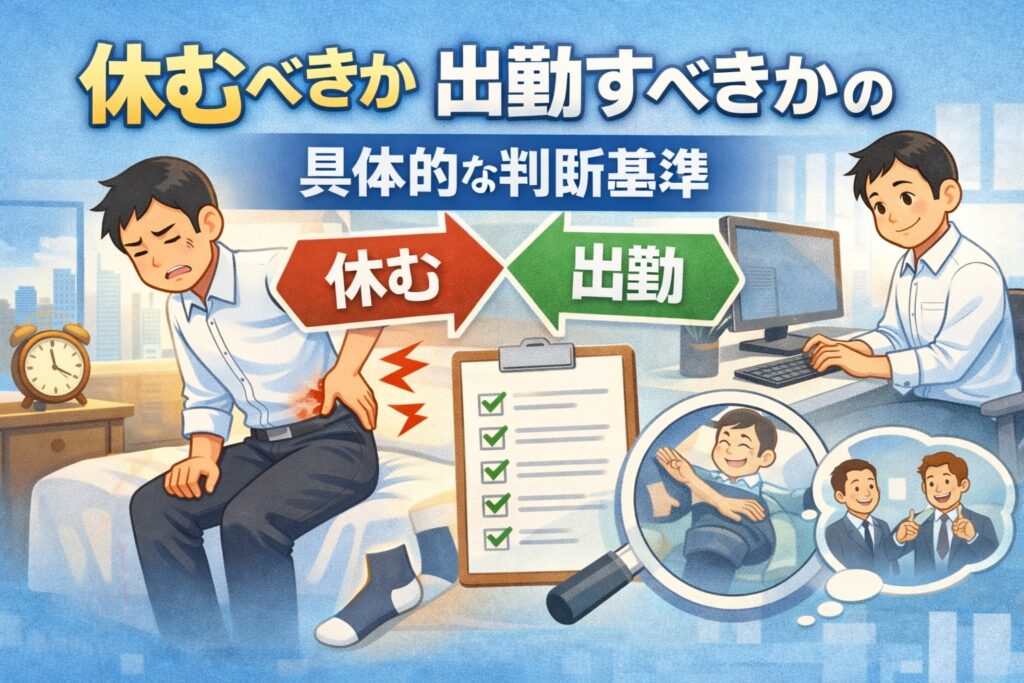 腰痛で休むか出勤するかは、甘えではなく状況判断の問題だと考えられています。周囲との調整も含めて、今の体にとって無理のない選択を意識することが大切だと言われています。