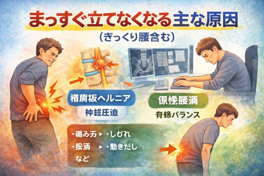 2.まっすぐ立てなくなる主な原因(ぎっくり腰含む)