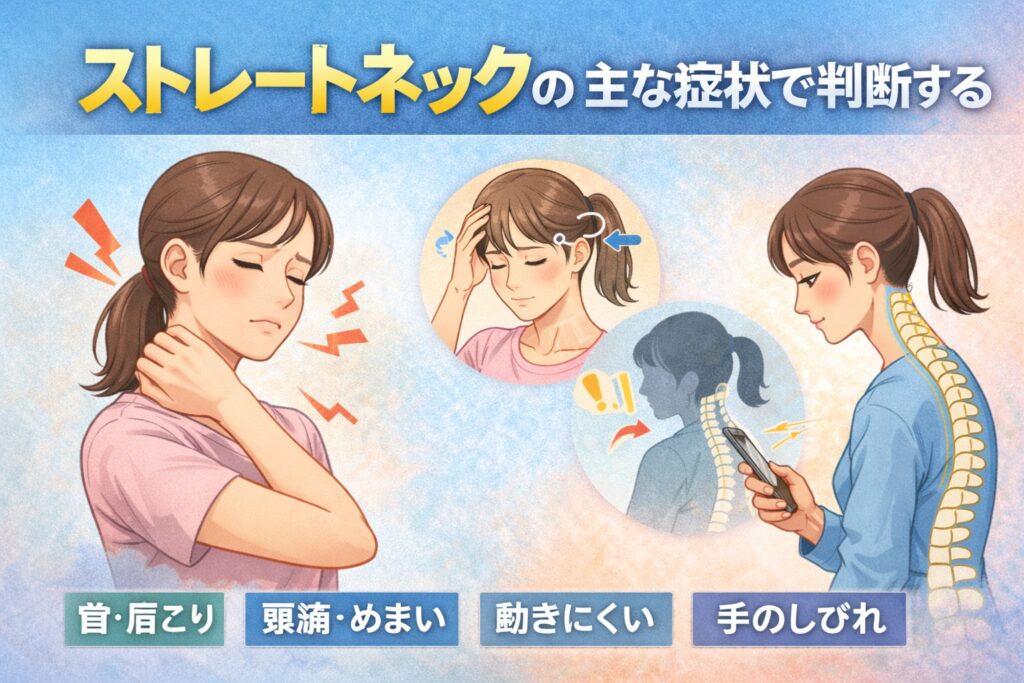 ただし、不調=必ずストレートネック、というわけではありません。だからこそ、**“判断する視点を知ること”**が重要になります。感覚だけで決めつけず、状態を整理する意味でも判別が必要だと言われています。