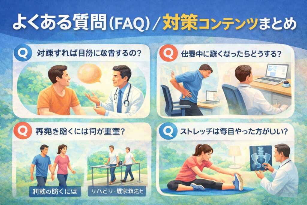 そんな声が多いのが、坐骨神経痛 対策のFAQです。ここでは、検索で特に多い質問をQ&A形式でまとめました。