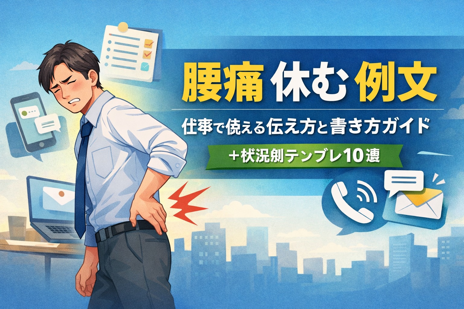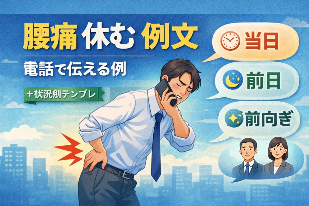 腰痛 休む 例文 を徹底解説。仕事を休むときの正しい伝え方、電話・メール・チャットで使える例文テンプレ、症状別の伝え方、休む期間の目安までわかりやすく紹介します。