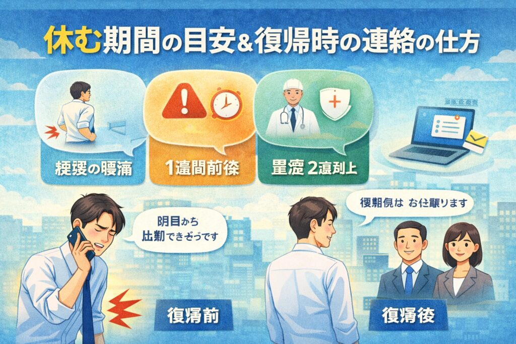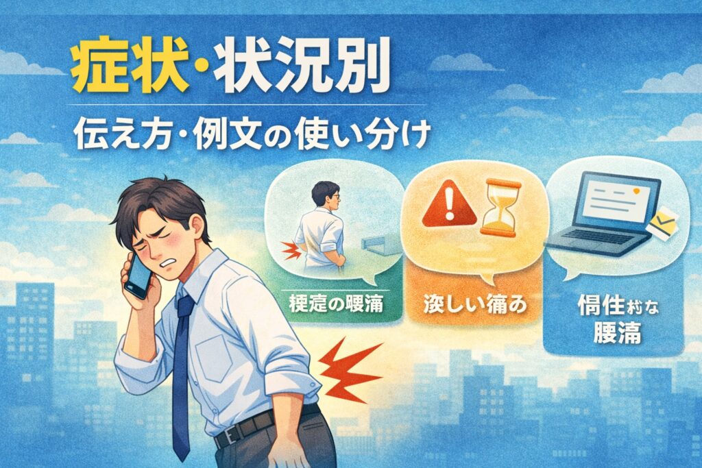 連絡では「腰が痛いです」だけで終わらせず、症状の程度・休む目安・業務対応を添えるのがコツです。