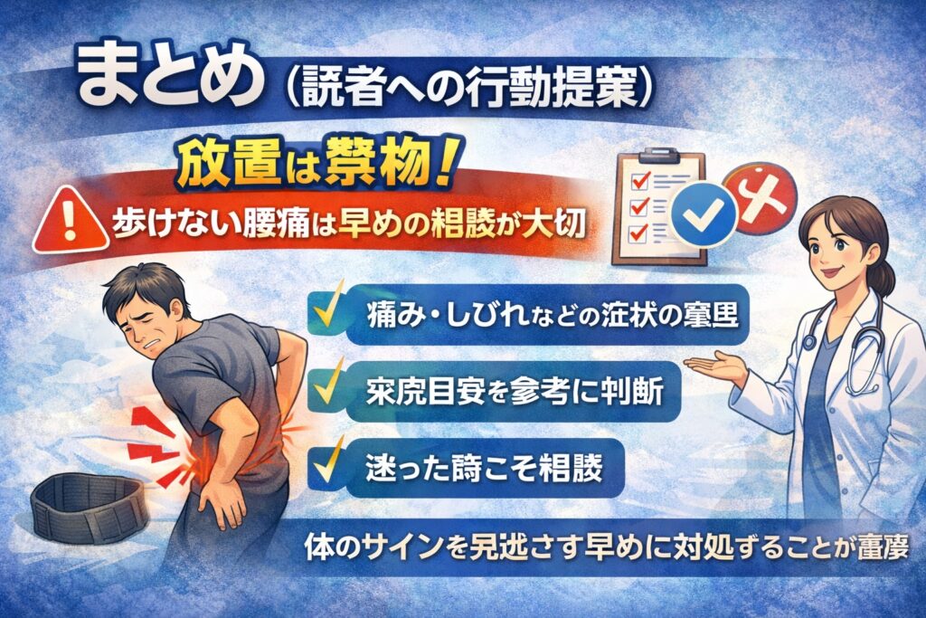 ここまで読んで、こう感じた方も多いかもしれません。検索上位の記事でも共通しているのは、歩けない腰痛を放置しない姿勢が大切だという点だと言われています。