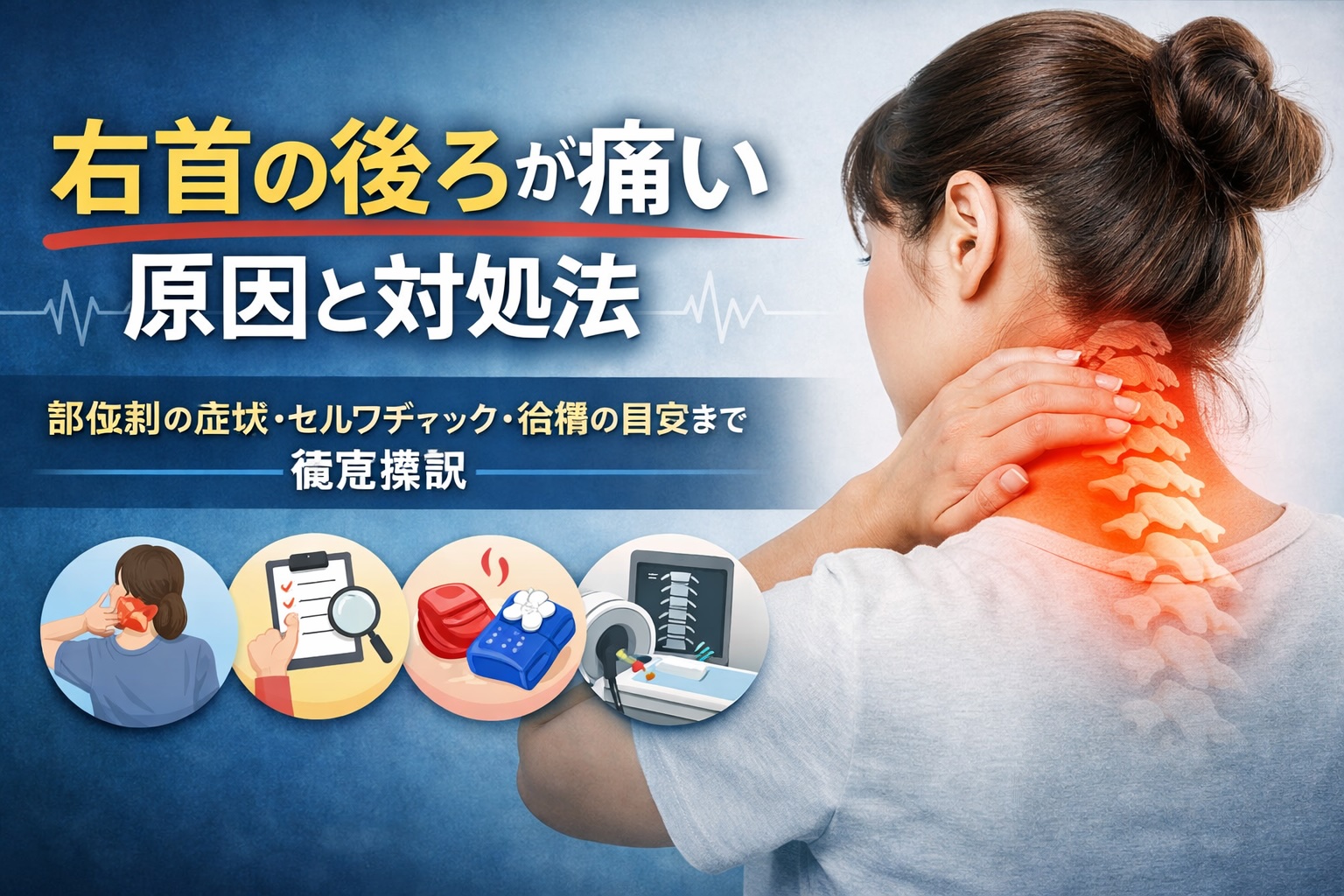 右首の後ろが痛い場合、筋肉のこり・姿勢不良・寝違えから、神経圧迫や頚椎異常まで原因は幅広く考えられます。痛みの出方やタイミング別に原因を判別し、即効セルフケア・治療の目安・受診サインをわかりやすく解説します。