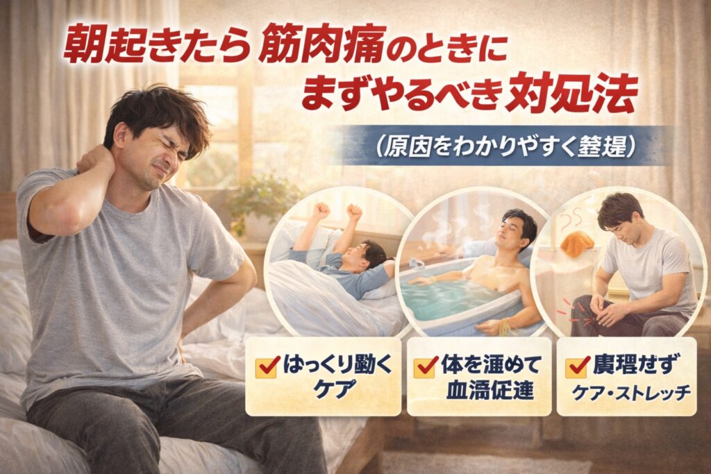 そんなときは、いきなり頑張らないのがポイントと言われています。朝の筋肉痛は、ゆっくり・温める・無理しないを意識することで、違和感がやわらぐケースもあるようです。