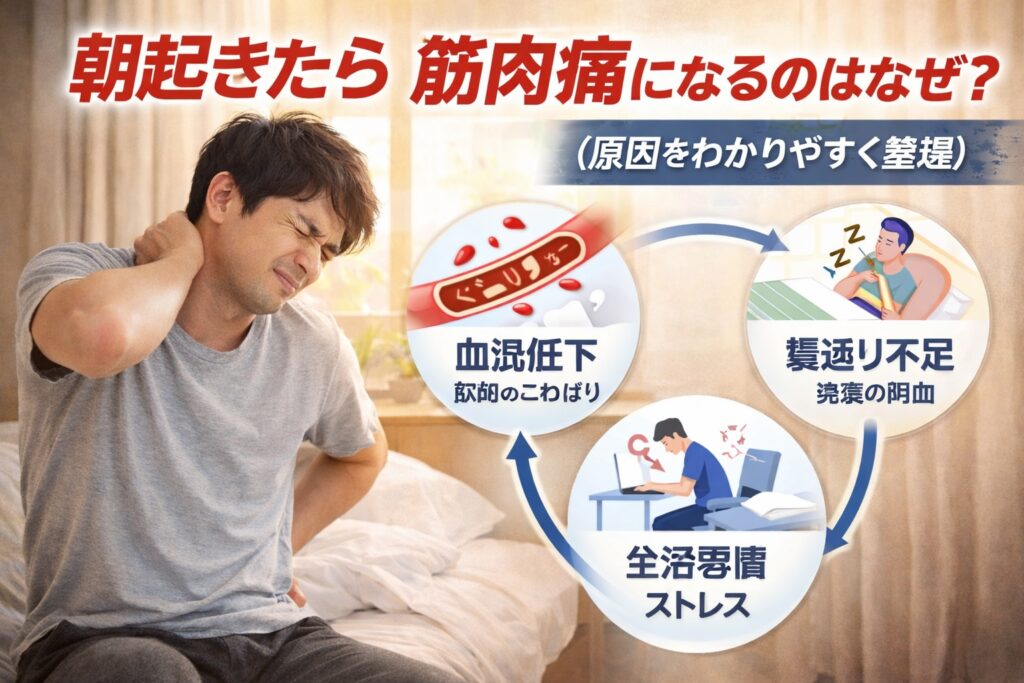 こんな経験、意外と多いんです。実はこれ、一般的な筋肉痛とは少し性質が違う場合があると言われています。ここでは“なぜ朝だけ筋肉痛のような痛みが出るのか”を、順番に見ていきましょう。