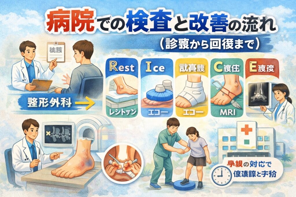 「ただの捻挫だと思っていたら、骨に異常があった」というケースもゼロではないため、最初に整形外科で確認しておくことが安心につながると言われています。