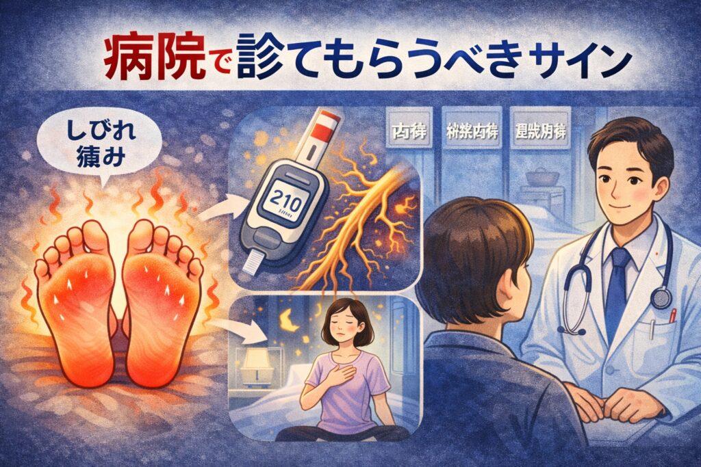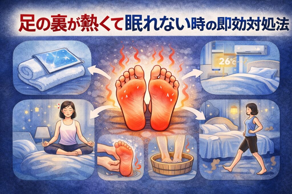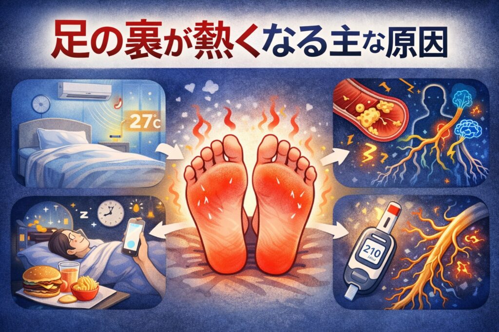 足の裏が熱くて眠れない原因は?血行不良・自律神経の乱れ・神経障害などの可能性を分かりやすく解説し、今すぐできる対策(冷やす方法・生活習慣の見直し・受診の目安)まで徹底ガイドします。