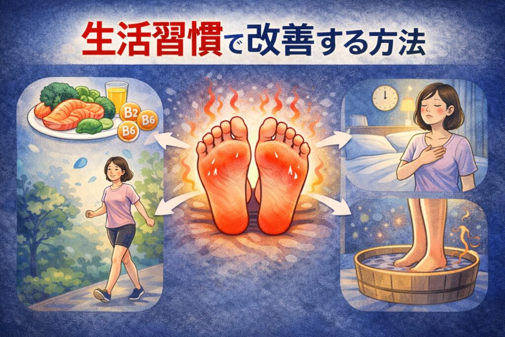 足の裏が熱くて眠れない状態が続く場合、日常の過ごし方を見直すことが大切と言われています。