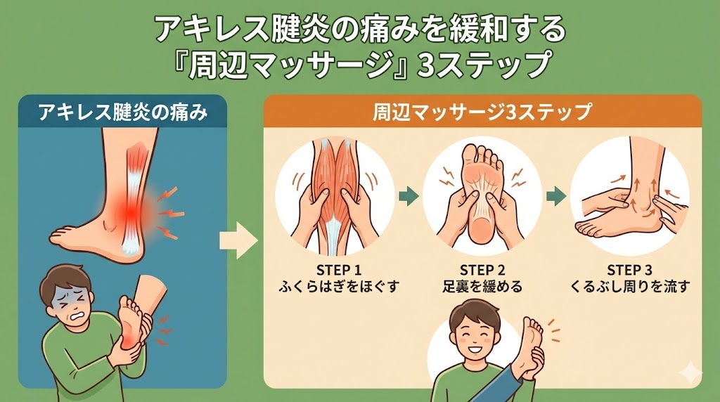 2.アキレス腱炎の痛みを緩和する「周辺マッサージ」3ステップ