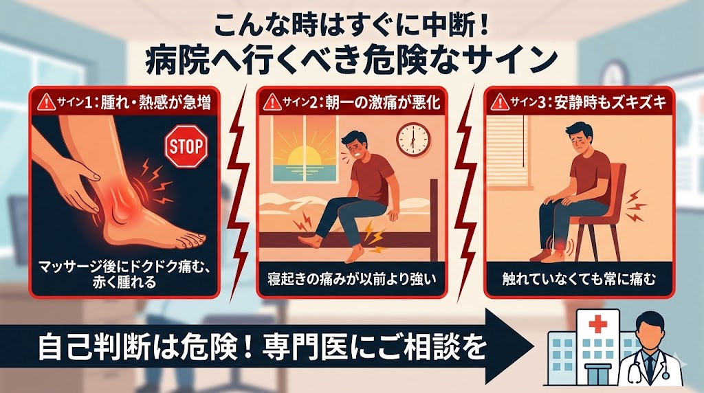 「痛いのを我慢してマッサージを続ければ、いつか楽になるはず」と無理をしていませんか?実は、体の出しているSOSを見逃すと、症状をさらに悪化させてしまうケースがあると言われています。