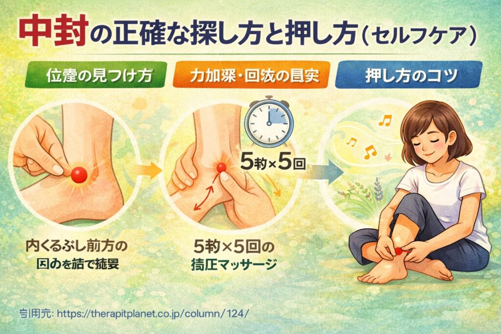 そうした状態のセルフケアとして、中封を押す方法が紹介されることがあります。
