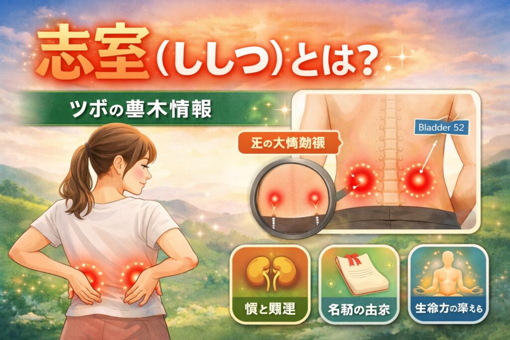 「志室(ししつ)って、結局なに?」と聞かれること、わりと多いです。会話風に言うと、「腰のあたりにある、体の土台を支えるツボだよ」と説明されることが多いですね。志室は腰部に位置する経穴で、足の太陽膀胱経に属すると言われています。国際的な番号ではBladder52として知られ、背骨のやや外側、ウエストライン付近にあります。