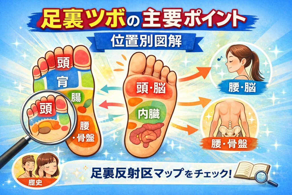 「ここ、押すとかなり痛いんだけど大丈夫?」と不安になりますよね。足裏のツボ(反射区)は、場所ごとに体の部位と対応づけて考えられることがあり、押して痛みを感じる箇所が“体調のヒント”になる可能性があると言われています。