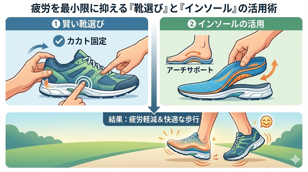 4.疲労を最小限に抑える「靴選び」と「インソール」の活用術