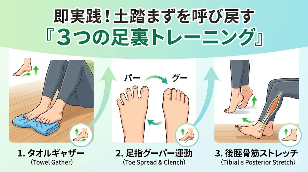 3.即実践!土踏まずを呼び戻す「3つの足裏トレーニング」