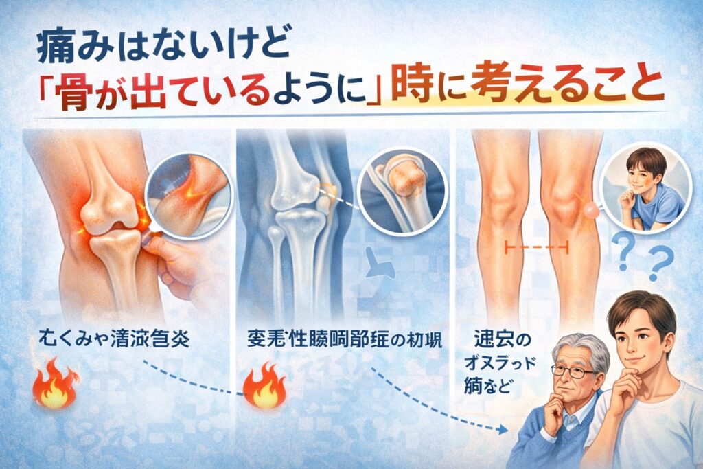 膝の横の骨が出ているように見えても、痛みがほとんどないケースは意外と多いと言われています。この場合、骨そのものではなく、別の要因が関係している可能性も考えられます。