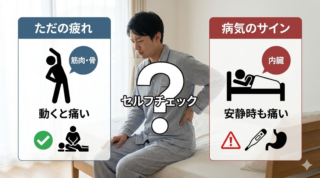 #背中の痛みチェック #安静時の痛み #内臓疾患のサイン #病院に行く目安 #背部痛の原因