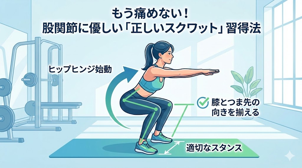 「スクワットを頑張っていたら、急に股関節がピキッと痛んだ……」そんな経験はありませんか?せっかくのトレーニングが痛みのせいでストップしてしまうのは、本当にもったいないですよね。