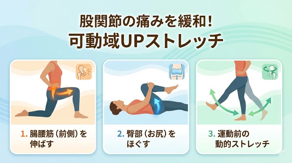 3.股関節の痛みを緩和し、可動域を広げる改善ストレッチ