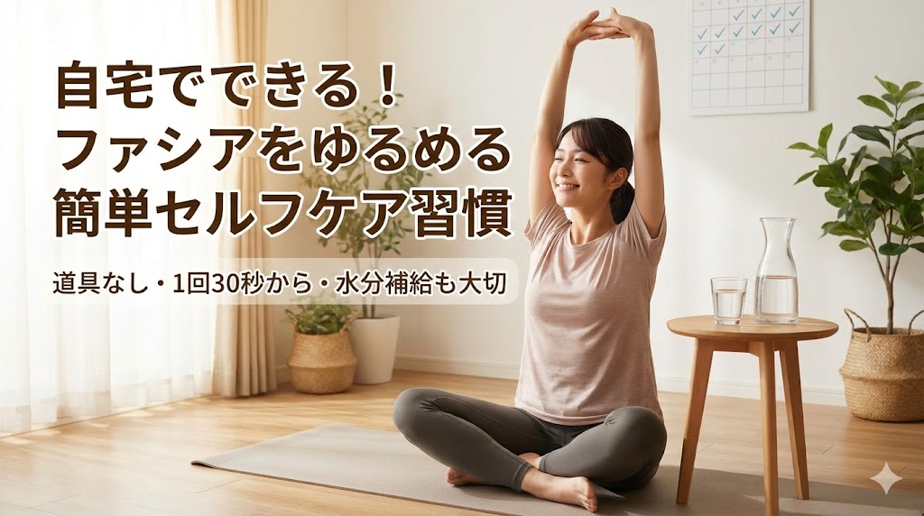 #おうちでセルフケア #ファシアをゆるめる #30秒ストレッチ #水分補給の習慣 #リラックス効果