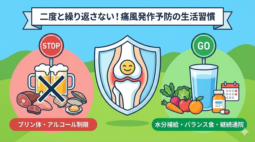 #食事療法 #水分補給 #プリン体制限 #尿酸値コントロール #再発予防