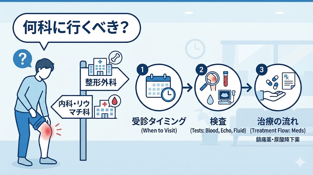 「膝が痛くて動けないけど、これって内科?それとも整形外科?」と迷ってしまいますよね。痛風は「血液の病気」としての側面と、「関節のトラブル」としての側面があるため、どちらに行くべきか判断に困る方も多いようです。