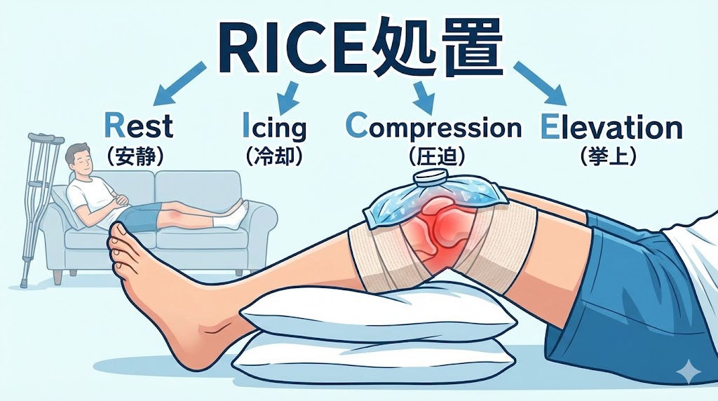 3.【応急処置】膝の痛みと腫れを今すぐ和らげる「RICE処置」の進め方