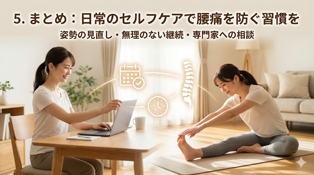 5.まとめ:日常のセルフケアで腰痛を防ぐ習慣を