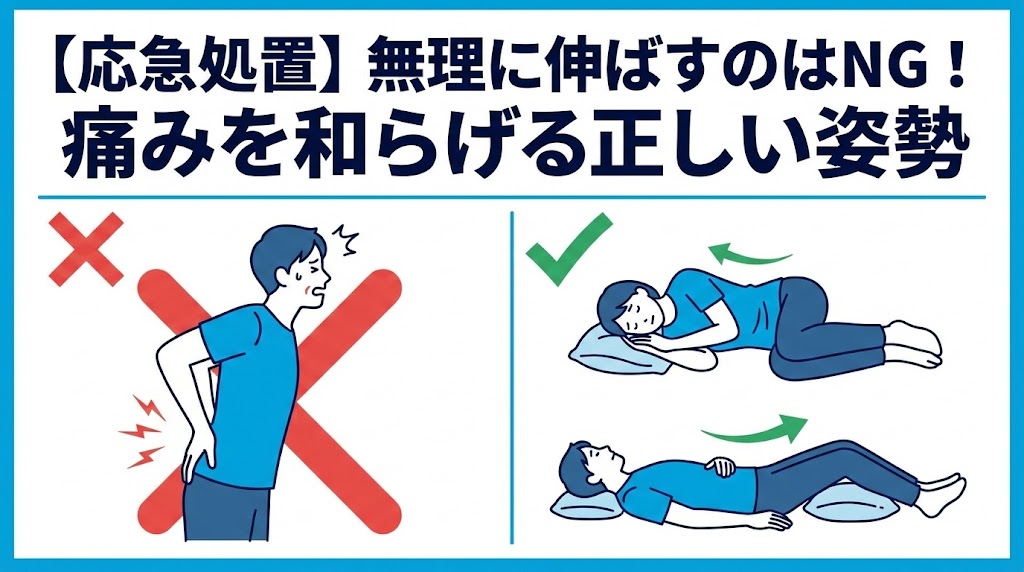 2.【応急処置】無理に伸ばすのはNG!痛みを和らげる正しい姿勢