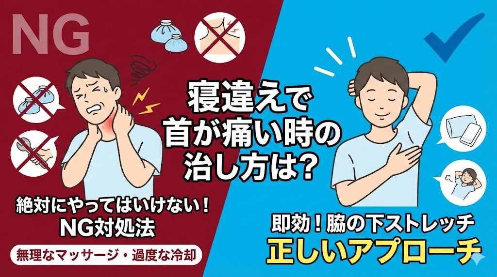 寝違えで首が回らない時の治し方を専門的知見から解説。今すぐ試せる即効ストレッチや、痛みを悪化させる「絶対にやってはいけない対処法」を紹介します。湿布の選び方や、病院・整骨院に行くべき判断基準も網羅。この記事を読めば、その辛い痛みを最短で解消するヒントが見つかります。