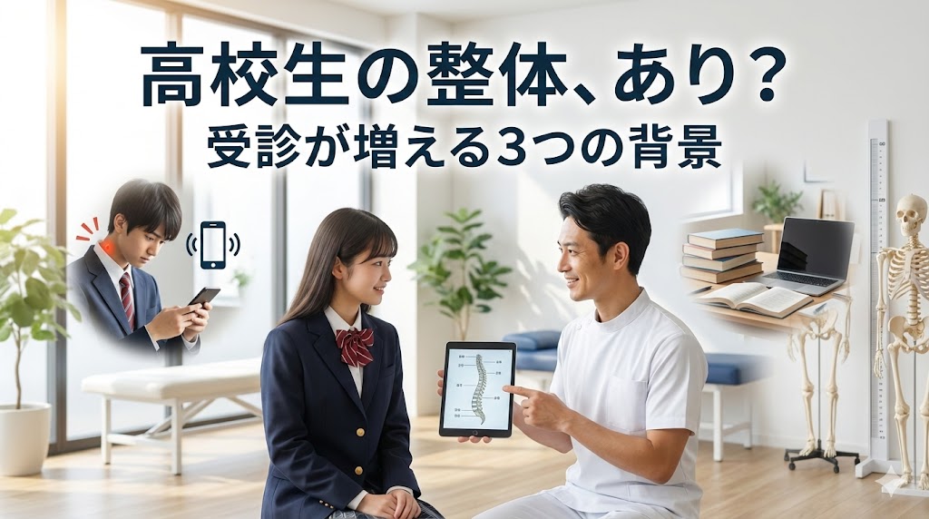 「高校生が整体なんて、まだ早いんじゃない?」 そんなふうに思っていませんか?実は最近、放課後に制服姿で来院する学生さんがすごく増えているんです。